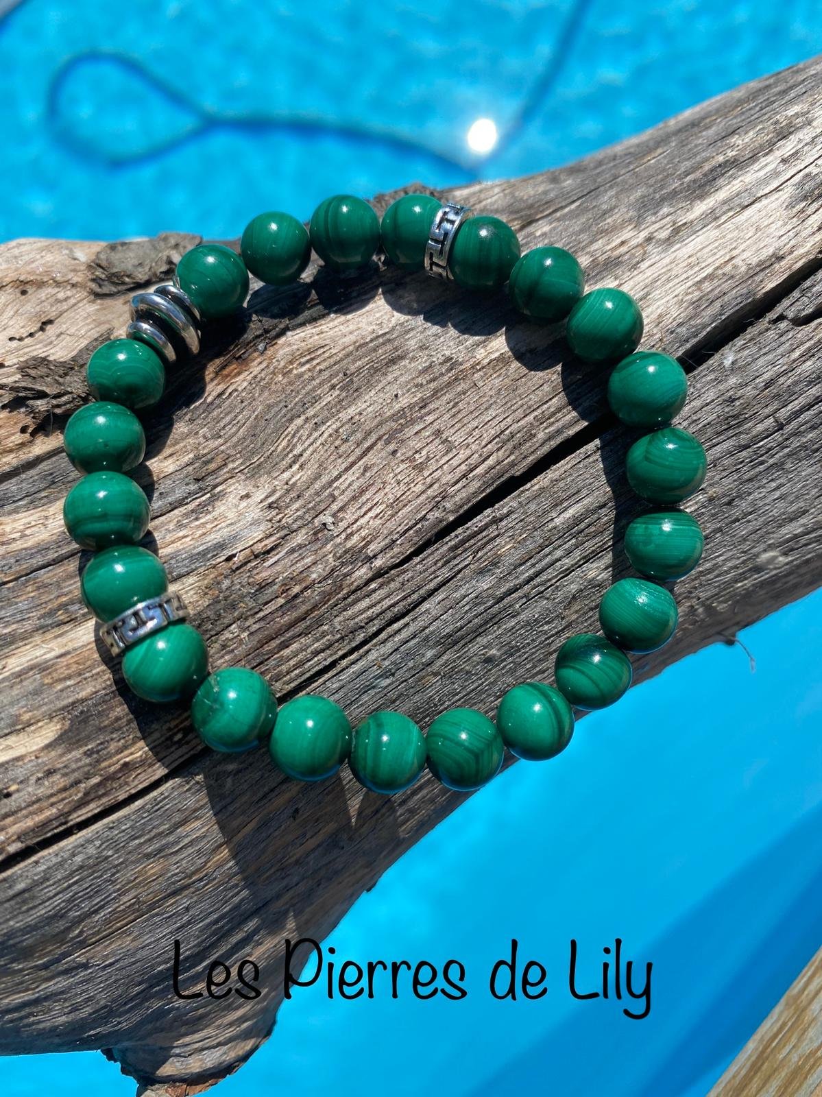 Pierre de transformation et de protection, la malachite absorbe les énergies négatives et favorise l’équilibre émotionnel. Elle accompagne les changements avec force et conscience, soutenant l’ouverture du cœur et l’harmonisation intérieure. Un bracelet puissant et élégant pour avancer avec justesse au quotidien.
