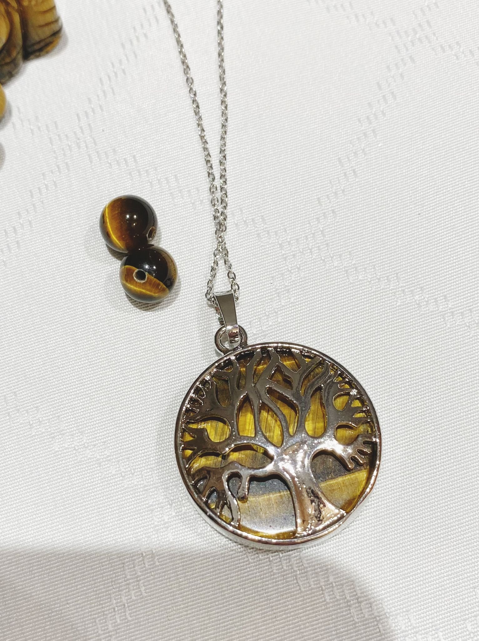 Alliance symbolique de force et d’harmonie, ce collier associe l’énergie protectrice de l’œil de tigre à l’Arbre de Vie, symbole d’ancrage, de croissance et de connexion. Il soutient la confiance, la stabilité et l’équilibre intérieur, tout en accompagnant le quotidien d’une énergie rassurante et protectrice.
